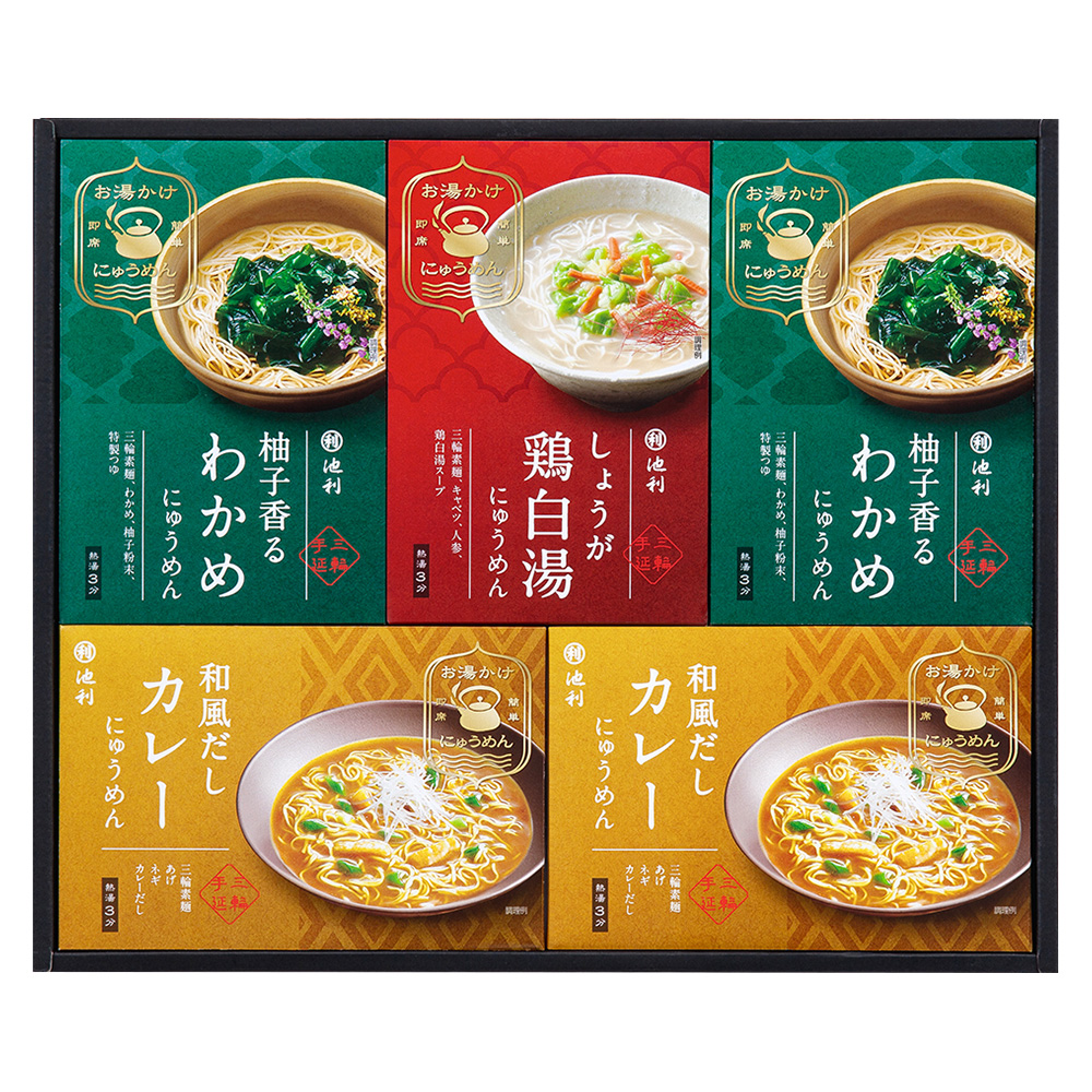 しょうが鶏白湯にゅうめん×1、柚子香るわかめにゅうめん×2、和風だしカレーにゅうめん×2