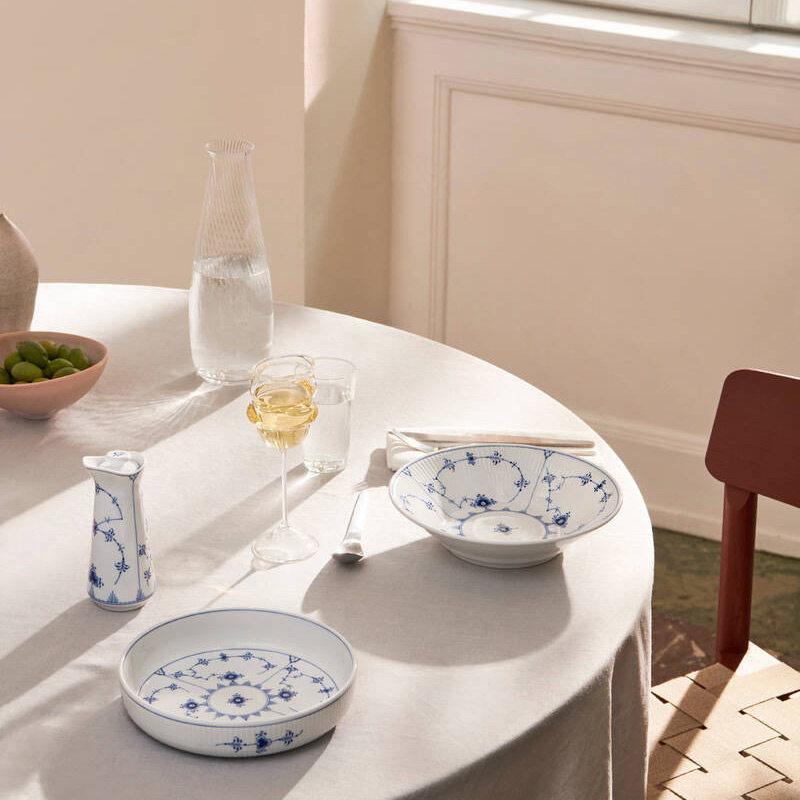 美しさと実用性を兼ね備えた、ブルーフルーテッド プレイン オーブンウェア。一人分のグラタンや小さめのキッシュなどにおすすめです。お料理をのせると内側には伝統的なパターンが隠されているため、お食事を楽しんだ後に模様が現れ、目でもお楽しみいただける器です。