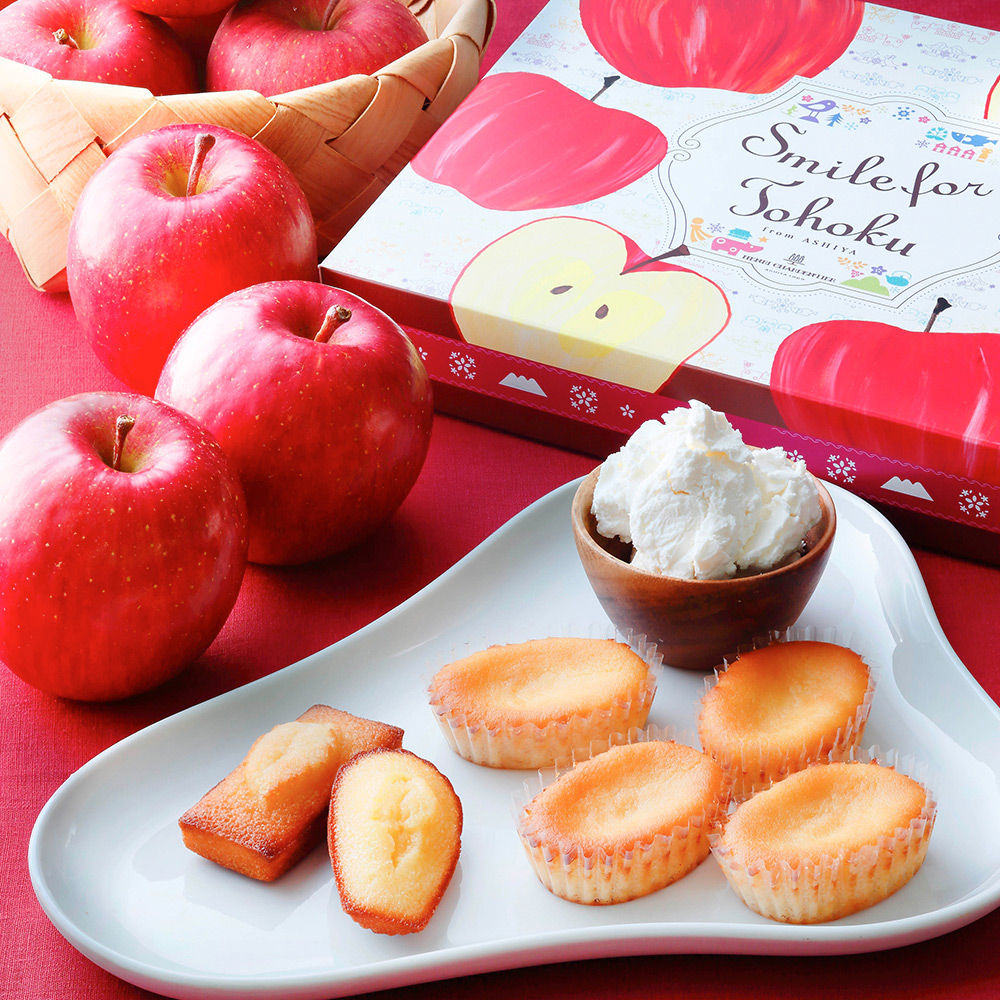 お菓子1個分のご支援で東北の復興や製菓を志す若者への支援を続けてきましたが、現在は、全国の製菓専門学生を応援する奨学金として、さらに活動を続けています。ケーク・フロマージュ<林檎>:しっとり焼き上げたクリームチーズのまろやかな乳味と、青森県産のみずみずしく爽やかな甘みの林檎のジャムを使ったチーズケーキです。フィナンシェ:しっとりやさしい口どけとともに、香り高いアーモンドの風味と発酵バターの豊かなコクがふわっと広がります。マドレーヌ:ふっくらしっとりした食感にラム酒のまろやかな香り、レモンと蜂蜜の爽やかな酸味が深いコクをもたらします。