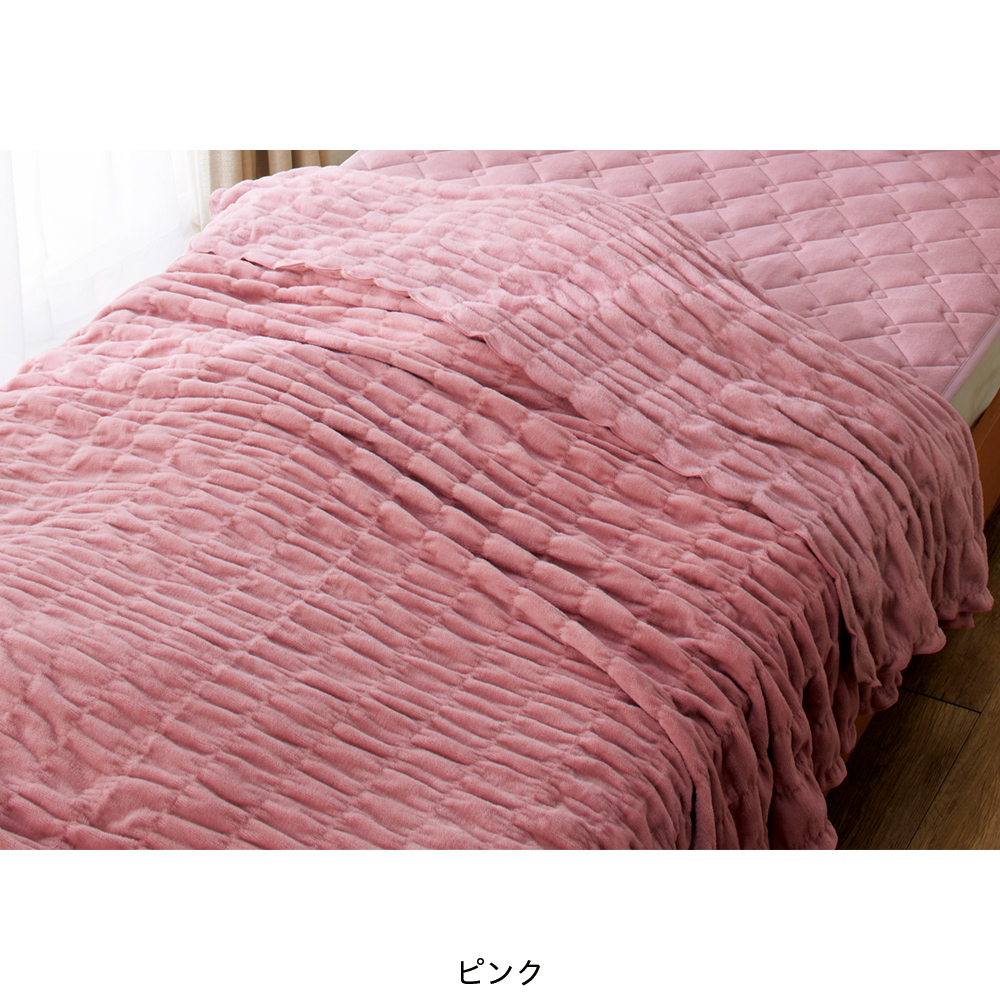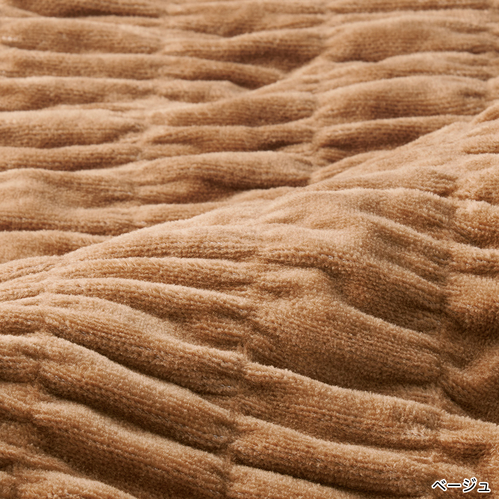 肌にあたる部分に「発熱コットン」を使用。柔らかな肌ざわりのシール織ケット。