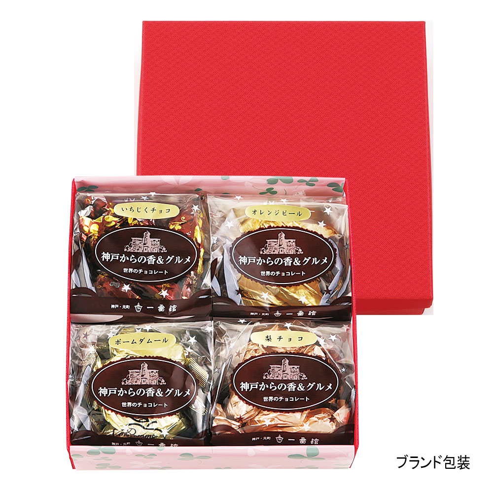 人気のオレンジ・チョコレートをはじめ4種の味を詰合せました。一粒ごとの味わいと食感をお楽しみください。