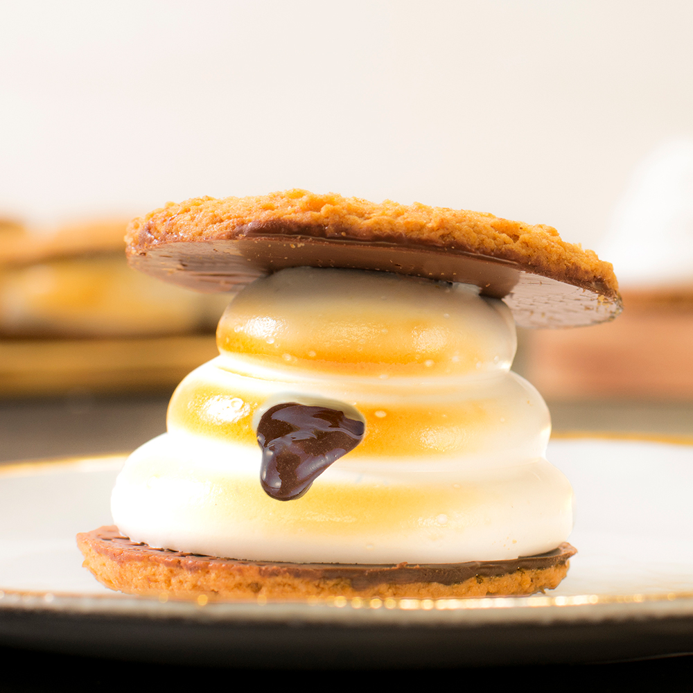 今までにない、マシュマロのふわふわ食感(触感)と、とろけだすチョコレートをプラスすることで、<しっとりクッキー×ふわふわマシュマロ×なめらかチョコレート>と幾重にも変わる食感を体験できるサプライズスイーツ。