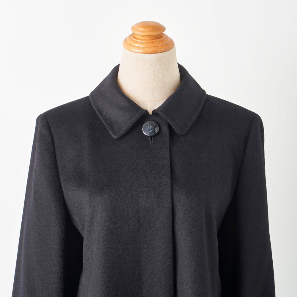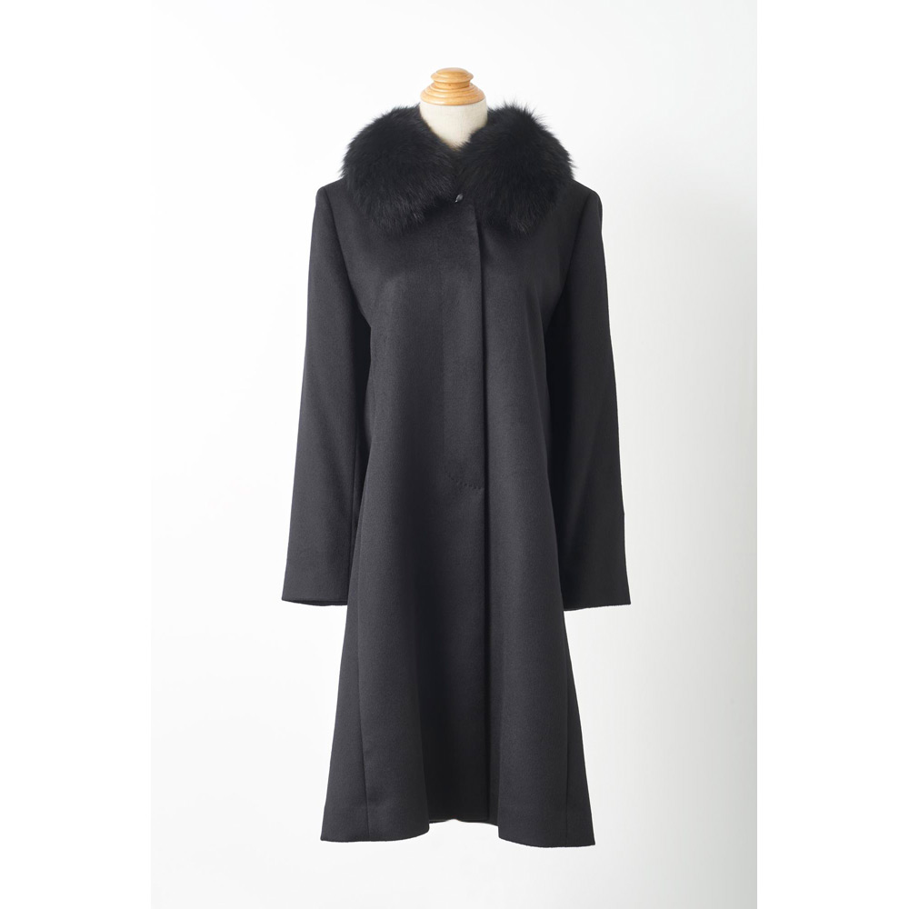 ブルーフォックス襟付き カシミヤ100%コート・比翼仕立て(着丈:98cm)7号→13号
