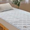 肌に触れるパイル糸部分は綿100%で、高級感のあるジャガード生地の敷パッドとなっております。中わた入りで保温性にも優れています。裏側四隅ズレ防止のゴムが付いており、敷きふとん、マットレスのどちらにでもご使用いただけます。お洗濯可能ですので、清潔感のある状態でご使用いただけます。