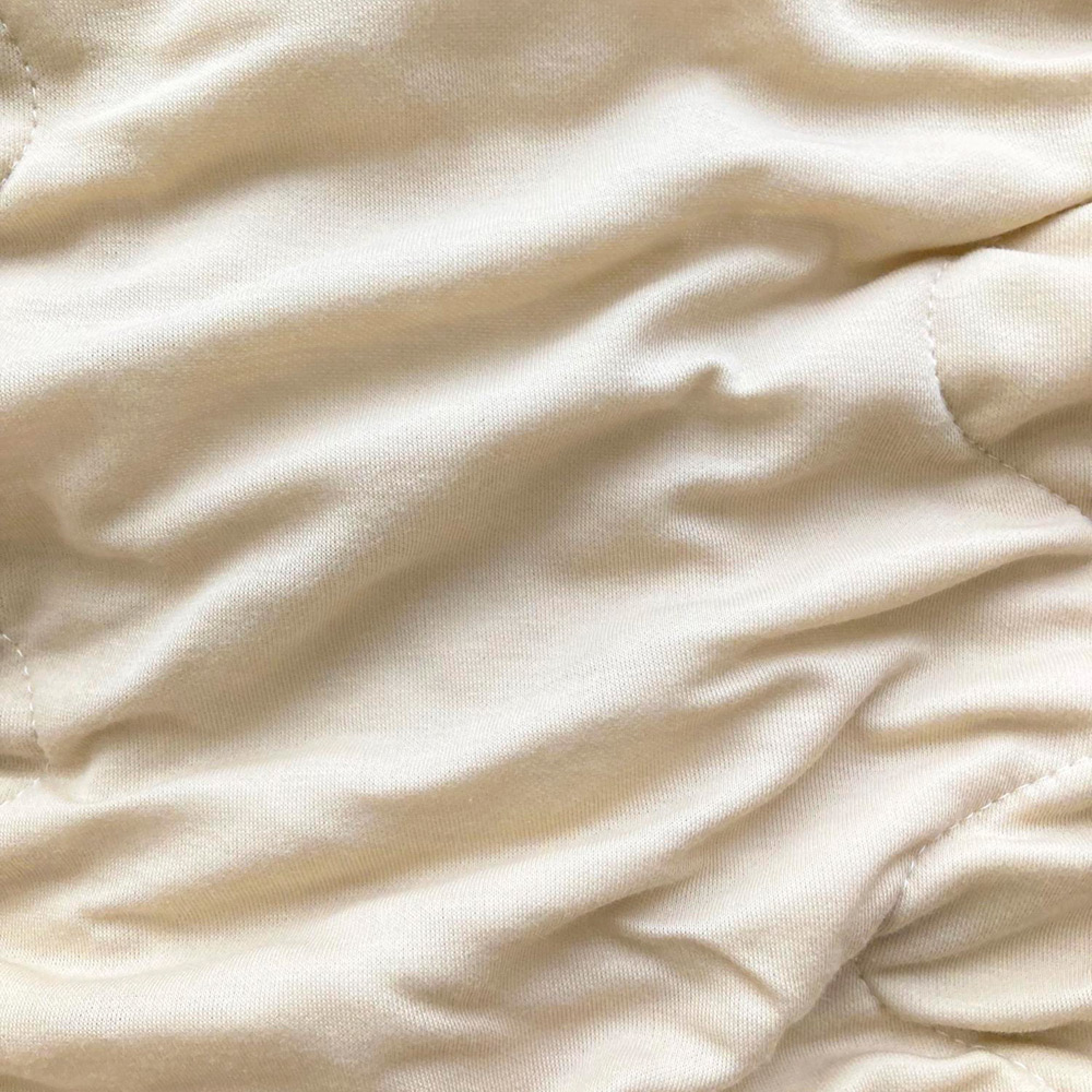 ガーゼニットキルトケットの合繊肌掛けふとんとなります。ガーゼ生地は空気を多く含んでいるため、温かく感じられます。またふわふわくしゅくしゅ生地のため肌に寄り添い肩口の隙間を無くしてくれます。中生地には、伸縮性を使用したレース状の生地を使用。中わたは適度な空気層を作ることであたたかい空気を保ち、ふんわり身体を包みます。
