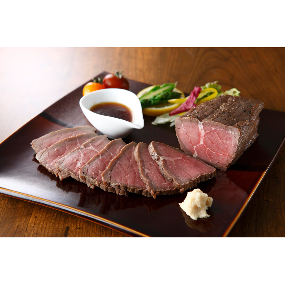 【ワケあり商品:規格外商品のためお買得!】噛みしめるほどに赤身肉のうまみと芳醇な和牛の香りがあふれ出すモモ肉のローストビーフです。塩と香辛料のシンプルな味付けで、肉の旨みを引き出しました。ローストビーフソースとレホール(西洋わさび)を添えてお召し上がりください。