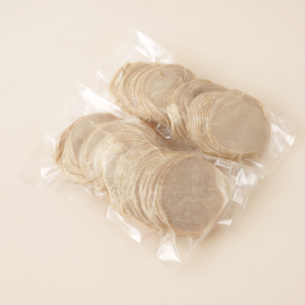 平田牧場三元豚のロース肉を1本丸ごと使って造り上げたスタンダードなロースハムです。発色剤を使用せず素材の色を生かした無塩せきハムです。原木をスライスするときにでる形が崩れてしまったスライス切落し品です。お野菜と一緒に炒めたり、そのままでもご利用いただけます。