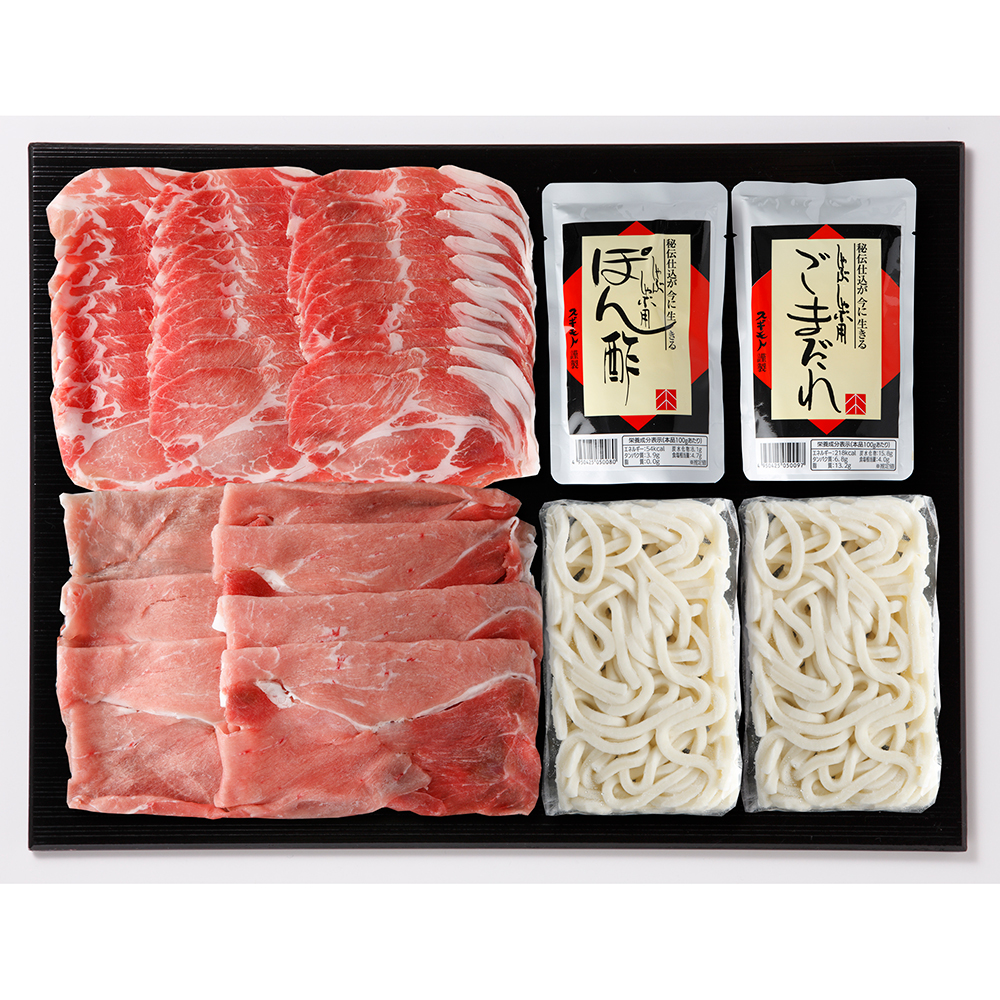 黒豚肩ロース・黒豚モモ各300g、うどん200g×2、ぽん酢・ごまだれ各170g