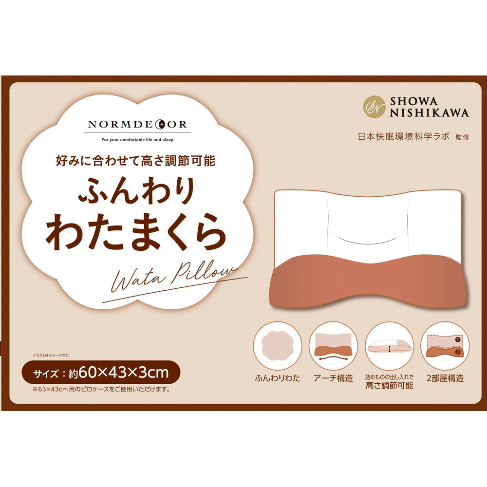 ふんわりわた枕:約60×43×3cm、しっかりパイプ枕:約60×43×3cm