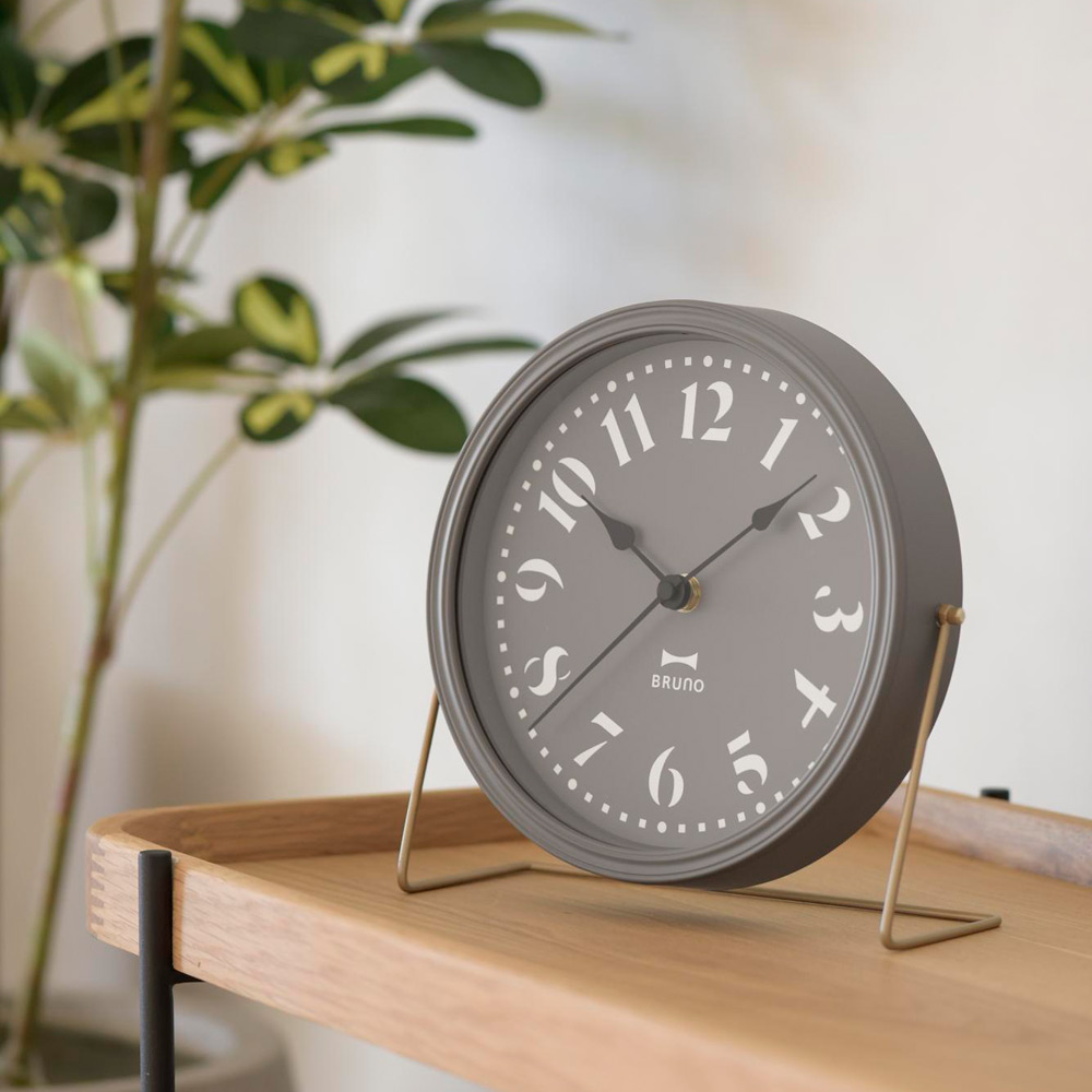 フレームや針など、細部から感じられる海外のヴィンテージ感が特長のクロック。レトロな雰囲気がインテリアをぐっとおしゃれに演出してくれます。文字盤を見やすい角度に調節できるゴールドのスタンドは、取り外し可能なので設置したい場所にあわせて置き掛けが選べます。