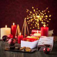 雪の結晶が上品に輝くデザインボックスにCARAMERのスイーツを詰めました。