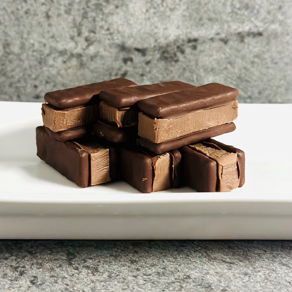 なめらかな生チョコレートを、チョコレートコーティングしたサクサクのサブレでサンドしました。