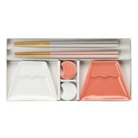 日本文化の象徴、富士山をモチーフにした箸置揃、小皿は醤油皿としてお使いいただけます。小皿上部は段差になっているので、ワサビ等の薬味置きにもぴったり。