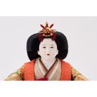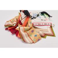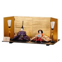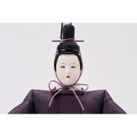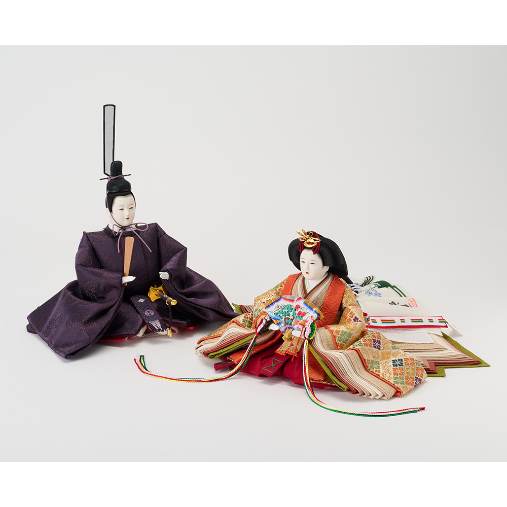 平安時代から伝わる有職文様を着せつけたおひな様。古代紫の衣裳の男雛と、白茶をベースに華やかな色調の女雛の唐衣が映えます。