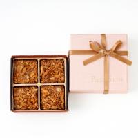 ヘーゼルナッツ味のミルクチョコレートジャンドゥージャに、とても薄いクレープ生地をコーティング。中はしっとり、サクサクした食感が楽しめます。