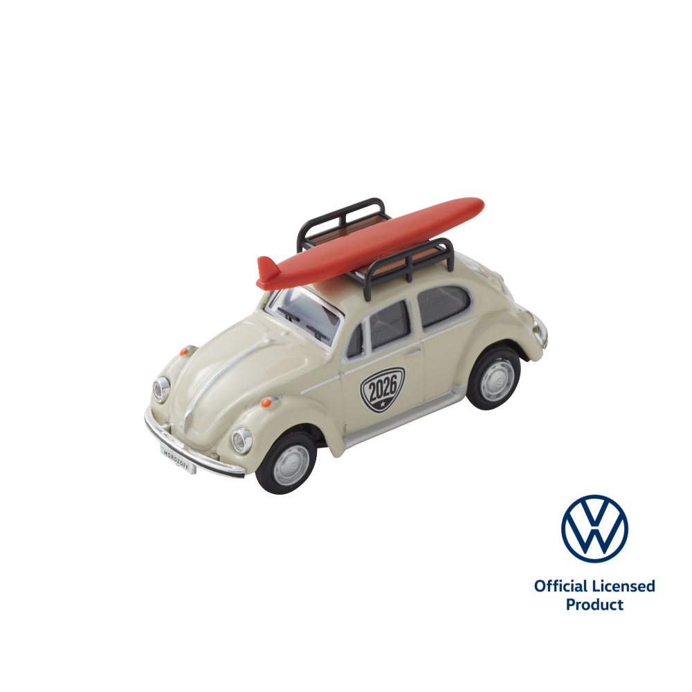 チョコレート×12個、サーフボード付きアイボリーのビートルミニカー×1個