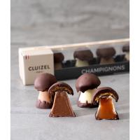 50年以上変わらぬ門外不出のレシピで作った見事な断面の層はまさに職人の匠技。傘のダークチョコレートの中にはヌガティン。幹のホワイトチョコレートはミルクでほんのり色付けし、クリィーミーなジャンドゥーヤとモチモチ食感のキャラメル味の2種をアソートにしました。遊び心とグルメな味を堪能できる<クルイゼル>の代表作。