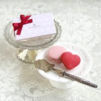 【冷凍便でお届けします。解凍まで時間がかかりますのでご注意ください。】赤いハートの形のマカロンはホワイトチョコにストロベリーを合わせたガナッシュ。ピンクのマカロンはホワイトチョコにミックスベリーを合わせたガナッシュ。カラフルなバレンタインをお楽しみください。