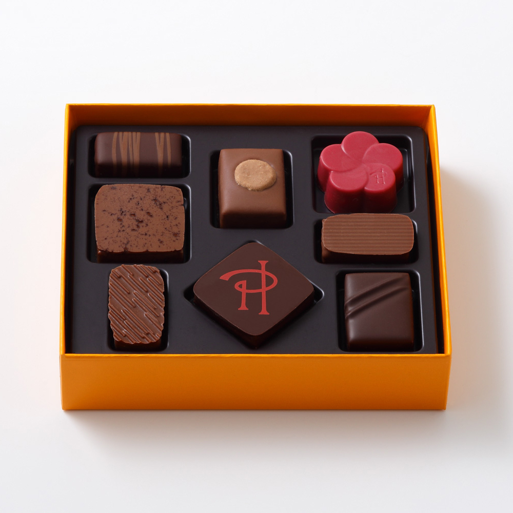 マカッサル、モガドール、アンフィニマン ショコラ オ レ、ショコラ オ マカロン アンフィニマン プラリネ ピニョン ド セドル、イスパハン、フルール ド プルニエ イスパハン、バルタザー、アンフィニマン プラリネ マイス 各1