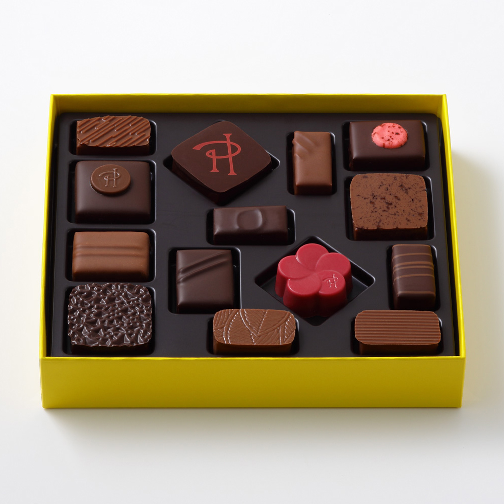 アンフィニマン ショコラ オ レ、アンフィニマン ヴァニーユ、アラベラ、 アンフィニマン アシエンダ エレオノール、イスパハン、ドルツェッツァ、アンフィニマン プラリネ マイス、ショコラ オ レ エ テ マッチャ、オマージュ、フルール ド プルニエ イスパハン、ショコラ オ マカロン クロエ、モガドール、マカッサル、バルタザー 各1
