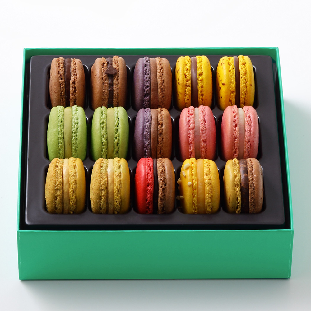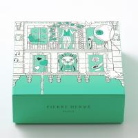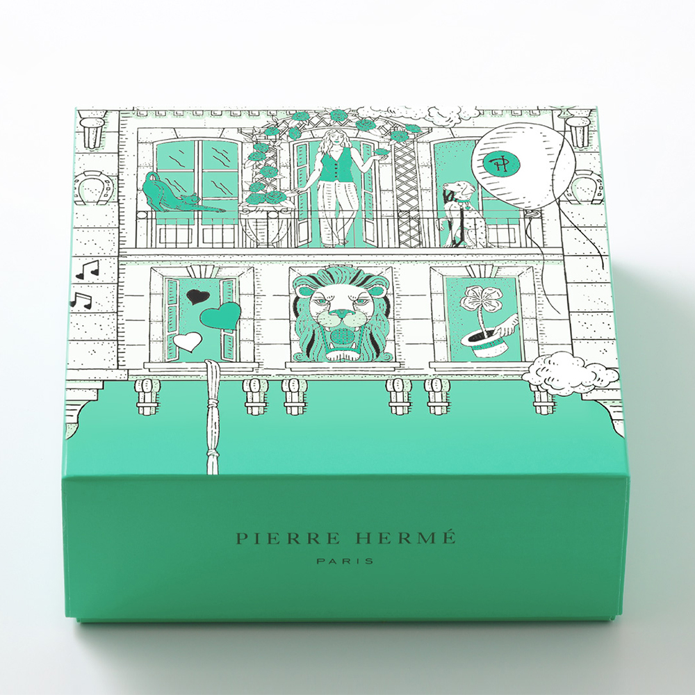 洗練された珠玉のお菓子。ブラジル・パイネイラス農園産純正チョコレートに対するオマージュが込められた「アンフィニマン ショコラ パイネイラス」や甘酸っぱいパッションフルーツと印象深いミルクチョコレートの「モガドール」など、チョコレートフレーバーを中心に 9種15個を詰め合わせました。イラストレーター、ジュリー・セールによるパリの雰囲気に満ちた夢のようなシーンが描かれた限定BOXでご用意いたします。