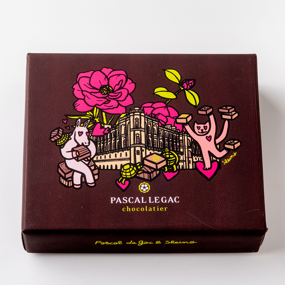2026年新作の赤い果実の果肉と、花と苺をブレンドした紅茶で香り付けした「フリュイルージュテノワール」と、カリッとした食感のそばの実が入った「サラザン」と「アルマニャック」の限定フレーバーの3品の他に「アメール」、「キャラメル」のベストセラーアイテムをはじめ「カシス」や「カフェノワール」など人気の定番9種のパスカル・ル・ガックを代表する様々な味わい豊かなガナッシュやプラリネを詰合せた贅沢なコフレ。
