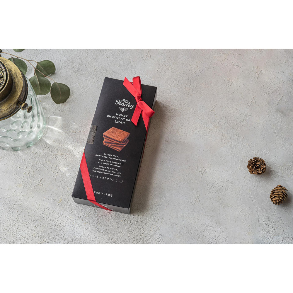 デイリーフリー(乳製品不使用)、たまごフリー、グルテンフリー(小麦粉不使用)。甘さは「アカシアはちみつ」だけ。1枚ずつ手作りで仕上げた罪悪感のないショコラサンドです。お口に含んだ瞬間カカオの香りとはちみつの甘さが、舌いっぱいに広がります。