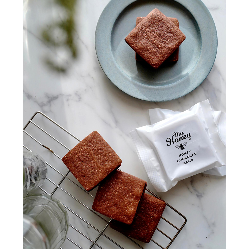 デイリーフリー(乳製品不使用)、たまごフリー、グルテンフリー(小麦粉不使用)。甘さは「アカシアはちみつ」だけ。1枚ずつ手作りで仕上げた罪悪感のないショコラサンドです。お口に含んだ瞬間カカオの香りとはちみつの甘さが、舌いっぱいに広がります。スリーブタイプのボックスの中にひとつずつ箱に入っています。お配り用や、ちょっとした手土産が必要な時に便利です。