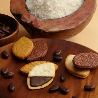 サクサク食感のココナッツ風味のサブレクッキーで、クリーミーなチョコレートをサンドしました。