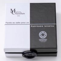 パリ本店前のユニヴェルシテ通りの石畳をイメージしたショコラ。コクのあるショコラにクリームを使って、甘美な味わいになっています。上川大雪酒造の心技の枠を尽くした純米大吟醸酒とパヴェが融合。すっきりとした吟醸香が際立ち、舌に感じるガス感の仄かな刺激に、雪の情景が重なるようなイメージを元に、風味を邪魔しないよう、2種のダークスイートのクーベルチュールを合わせることで、口に広がる味わいに、華やかな酸味と香ばしさを加えつつ、上品な苦みと缶身が調和した、柔らかな後味の一品になるように仕上げました。