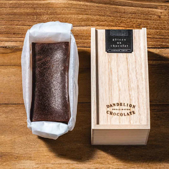 チョコレート、卵、きび糖、バターの4つの原材料のみを使い、小麦粉を一切加えない「グルテンフリー」のガトーショコラです。自社ファクトリーに隣接するペストリーキッチンで、一つ一つ丁寧に焼き上げています。生命力溢れるカカオの風味をダイレクトに感じられる驚きの一品です。桐箱に入れてお届けいたします。