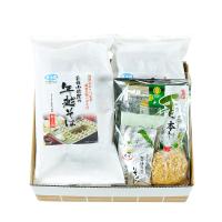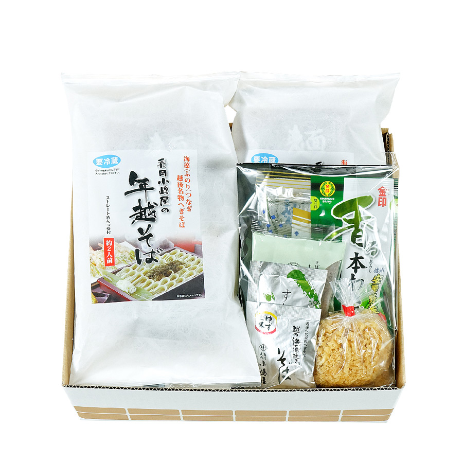そば300g×2、麺つゆ100g×4、刻み海苔4g、ゆず七味3g、すりごま4g、揚げ玉40g、そば茶8g×5、わさびチューブ23g