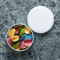 (<ロゼ>木苺、<黄>マンゴー、<緑>抹茶、<白>ホワイトチョコレート、<紅色>苺、<淡青色>ミント)