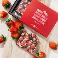 苺ピューレを使用したフルーティな生チョコ。みずみずしく華やかな香りの苺ピューレをたっぷりと使用し、なめらかなくちどけにこだわり抜いたショコラと合わせた贅沢な生チョコです。