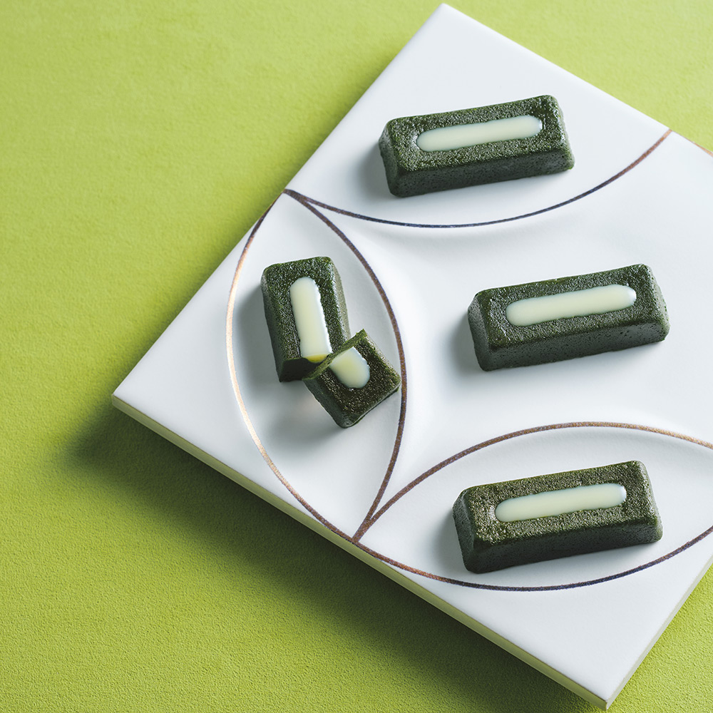 自然な旨みの宇治抹茶を使用。低温でじっくり火入れをすることでなめらかな食感のテリーヌに仕上げ、ミルクのまろやかな味わいと程よい甘みが、濃厚なお濃茶の風味と共にお口に広がります。