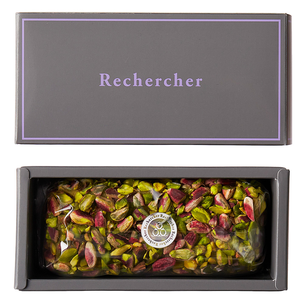 ピスタチオをふんだんに入れたテリーヌの中にアマレットチェリーを入れ、少し塩気を感じるピスタチオの粗砕きで食感をさらにプラス。