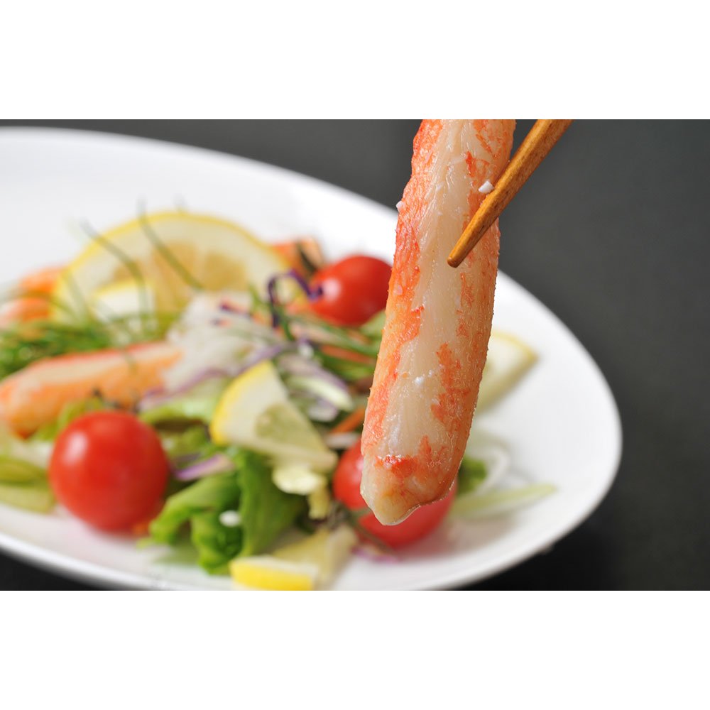 殻上側半分だけを取り除いたビードロカットにしていますのでそのままお召し上がりいただけます。棒脚肉、爪、肩肉の3つの部位を詰め合わせています。解凍してそのままお召し上がりいただけます。お鍋・焼きなど加熱もOKです。第二関節の細い棒肉部分は、折って吸い出すようにお召し上がりいただくのがおすすめです。
