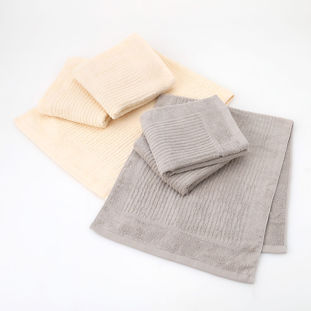 <セット内容>フェイスタオル(アイボリー×3、グレー×3) 計6点