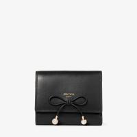 バイカラーのレザーを使用したクラシックなスタイルに、パールとクリスタルを飾ったリボンをあしらったMarindaウォレット。マグネットボタンで開閉し、内側にジッパー付きコンパートを備えたデザイン。