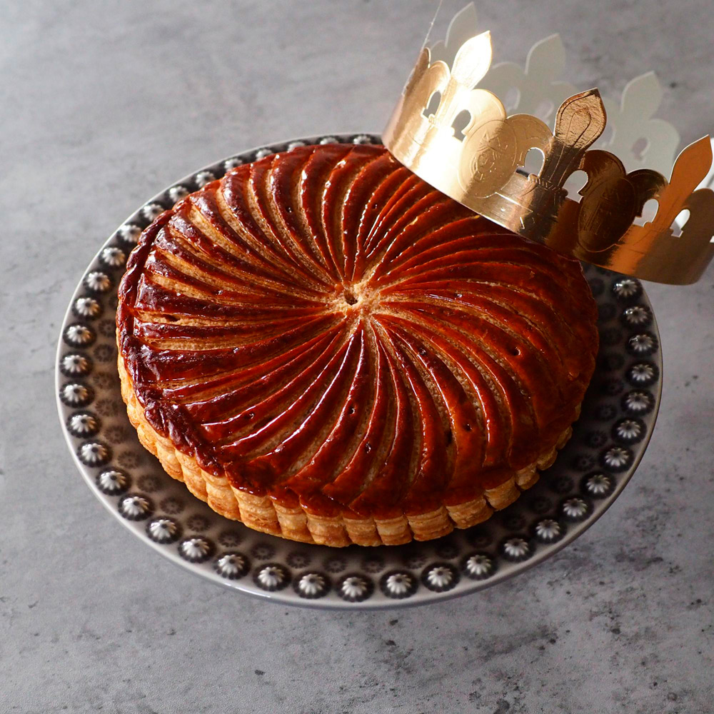 香ばしい表面のキャラメリゼの中に、北海道バター使用のパイ生地とアーモンドクリーム。1層1層をしっかりと感じられる生地とお店で挽いたマルコナアーモンドのフランジパンヌはしっとり。食感、水分のコントラストとそれらをまとめるバターやバニラ(マダガスカル)の香りをお楽しみください。※フェーブは別添えです。※フェーブの種類はお選びいただけませんのでご了承ください。