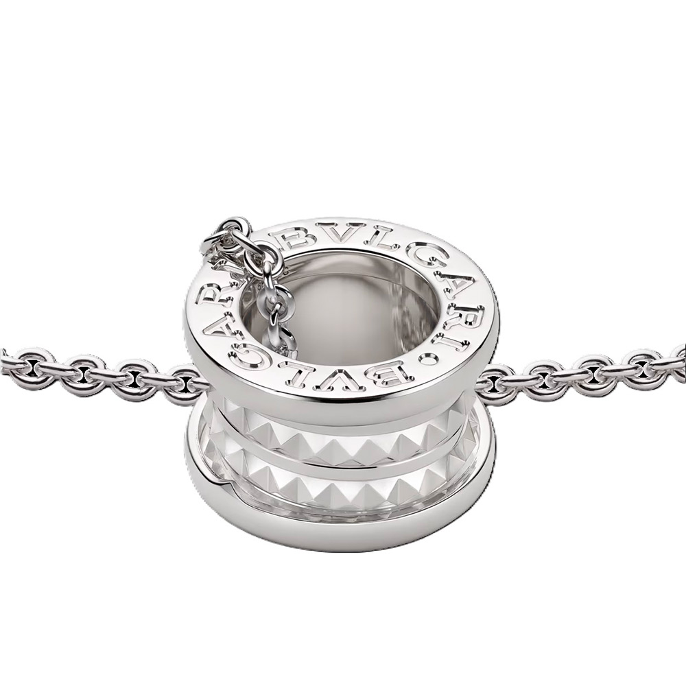 アイコニックなビー・ゼロワン ロック ジュエリーコレクションからインスピレーションを得た円形のスタッドセットペンダント。セーブ・ザ・チルドレンのロゴのエングレーヴィング。