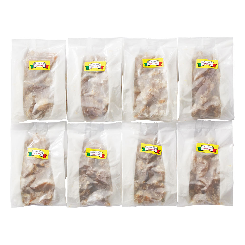 イタリア産栗を100%使用し、ヨーロッパ伝統の製法で、バニラと洋酒が香るシロップに漬け込んだマロングラッセ。割れ、欠けがあるものを小袋に詰めました。
