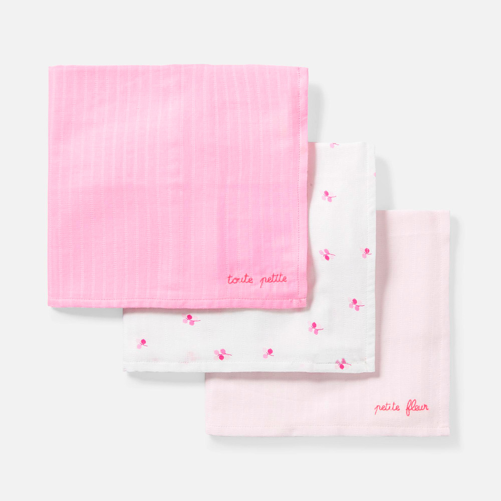 赤ちゃんに毎日寄り添う、柔らかで軽量なコットン製のおくるみ3枚セット。可愛らしいベリーのモチーフ、ネオンカラーの美しい刺しゅうが魅力の機能的なアイテム。食べこぼしや飲みこぼしからお洋服を守り、おむつ交換やお着替えにもぴったり。可愛らしいリバティプリント(花柄)のリボン付きでギフトにもおすすめです。