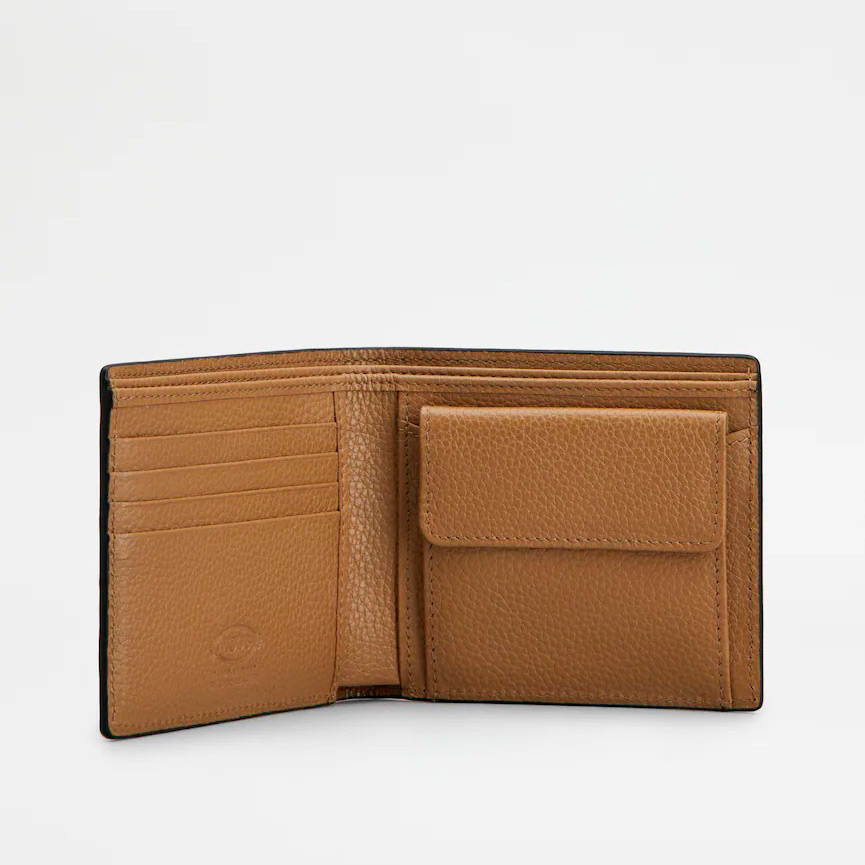 フロントにホットスタンプのトッズ ロゴをあしらった、柔らかなカーフ レザーのウォレット。内側に2つの札入れ、コイン ポケット、カードスロットを備えています。