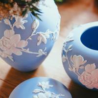 ウェッジウッドを代表する素材「ジャスパー」を用いたインテリアコレクション「マグノリアブロッサム」。ウェッジウッドブルーとも言われるペールブルーのジャスパーの上に、英国の庭でよく見られるマグノリアをホワイトジャスパーで立体的に表現しました。アシンメトリーに生き生きとレイアウトされたマグノリアのレリーフが華やかなコレクションです。口がすぼまった形状の一輪挿し。たった一輪のお花でも、シンプルながらも洗練された雰囲気をまとって活けられます。一輪から、気軽にお花を生活に取り込めます。