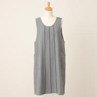 センターにあしらったラインがスタイリッシュなエプロン。さらっとしていて洗濯後のケアも容易なポリエステル素材を使用しています。