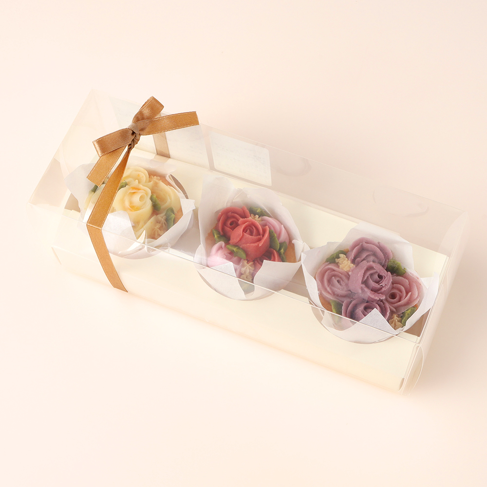 【冷凍便でお届けします。解凍までに時間がかかりますのでご注意ください。】鹿児島産素材と発酵バター、北海道産小麦使用本物の花束のようなイメージでデザインしたカップケーキのセットです。