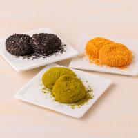 【冷凍便でお届けします。解凍まで時間がかかりますのでご注意ください。】大人気の砂利餅3種セットです。濃厚で味の深みのあるピーナッツクリームときな粉の香りが広がる「黄金砂利餅」はお口いっぱいに広がるきな粉やピーナッツの風味とジャリジャリとした食感を楽しめる香り豊かな一品です。香り豊かな黒胡麻がピーナッツの甘さを引き立てる「黒胡麻砂利餅」はどこか素朴な見た目とは裏腹に、口に含んだ瞬間ジャリッとした楽しい食感が待っています。名古屋の老舗お茶専門店の抹茶をふんだんに使った「抹茶砂利餅」は水分を吸いやすいという特性がある抹茶が餅の水分を極力吸わないよう試行錯誤を重ねた一品。3種とも保存料や乳化剤などは一切使用しておりません。