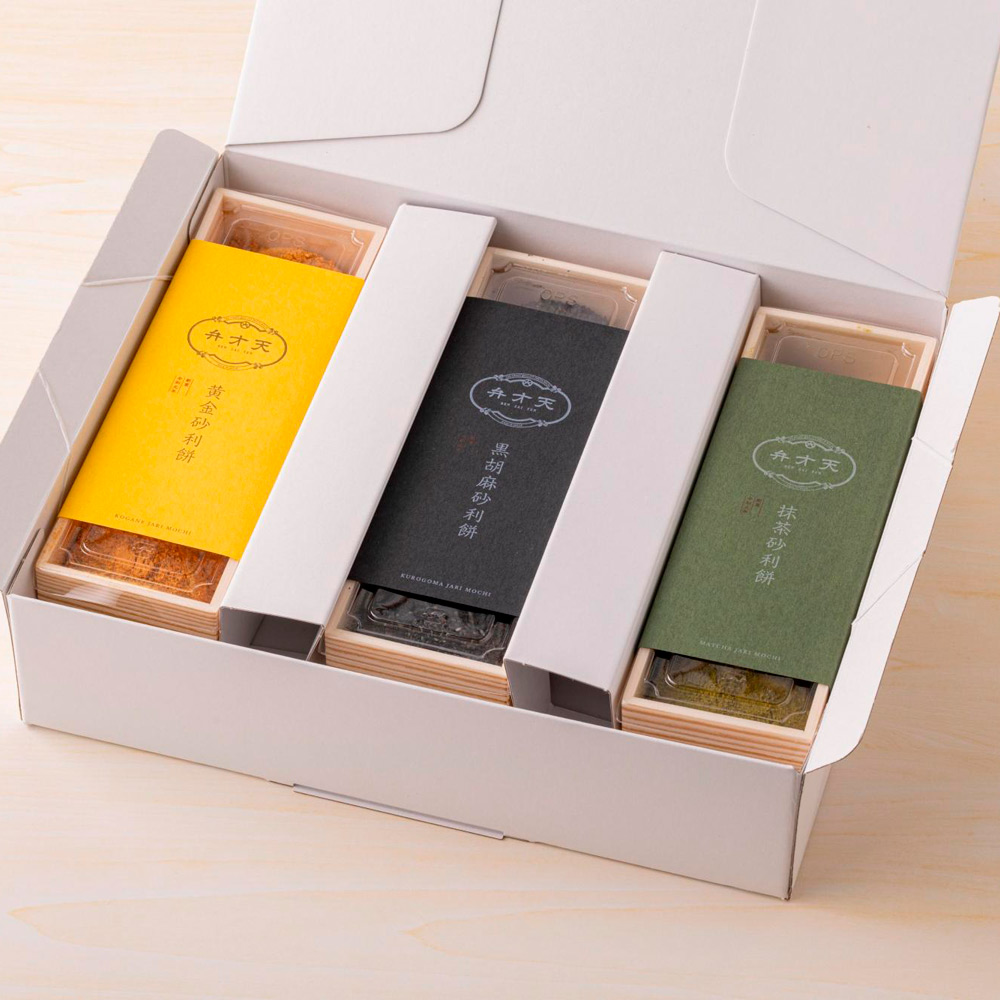 黄金砂利餅、黒胡麻砂利餅、抹茶砂利餅 各1箱(5個入り)