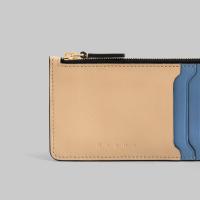カーフレザー製の“TRUNKAROO”フラグメントケース。ファスナー式コインケース1つ、表面カードスロット4つ。フロントにロゴ入り。